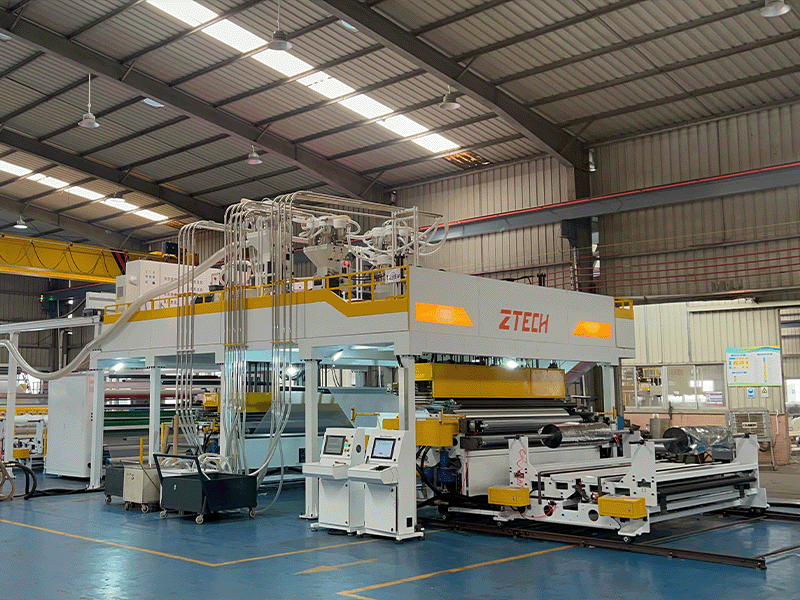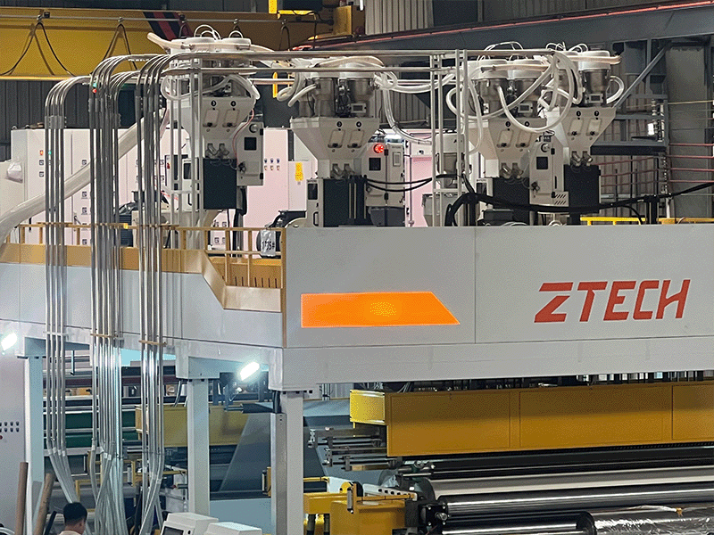- Control independiente de capas: Equipada con cuatro tornillos y dos dispensadores, esta máquina de película de burbujas ajusta de forma independiente el grosor y el caudal de cada capa, lo que permite ajustes flexibles de la fórmula (por ejemplo, hasta una proporción de 100% HDPE/PP).