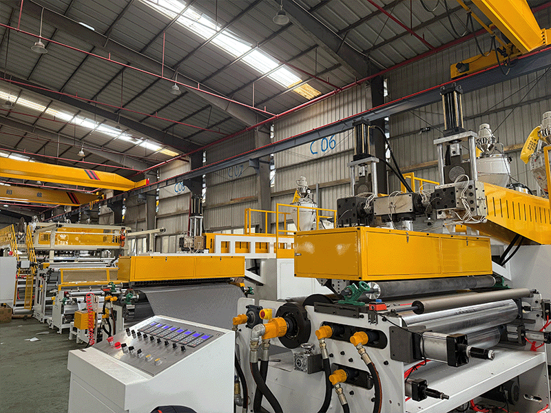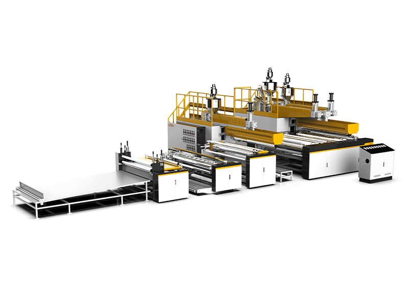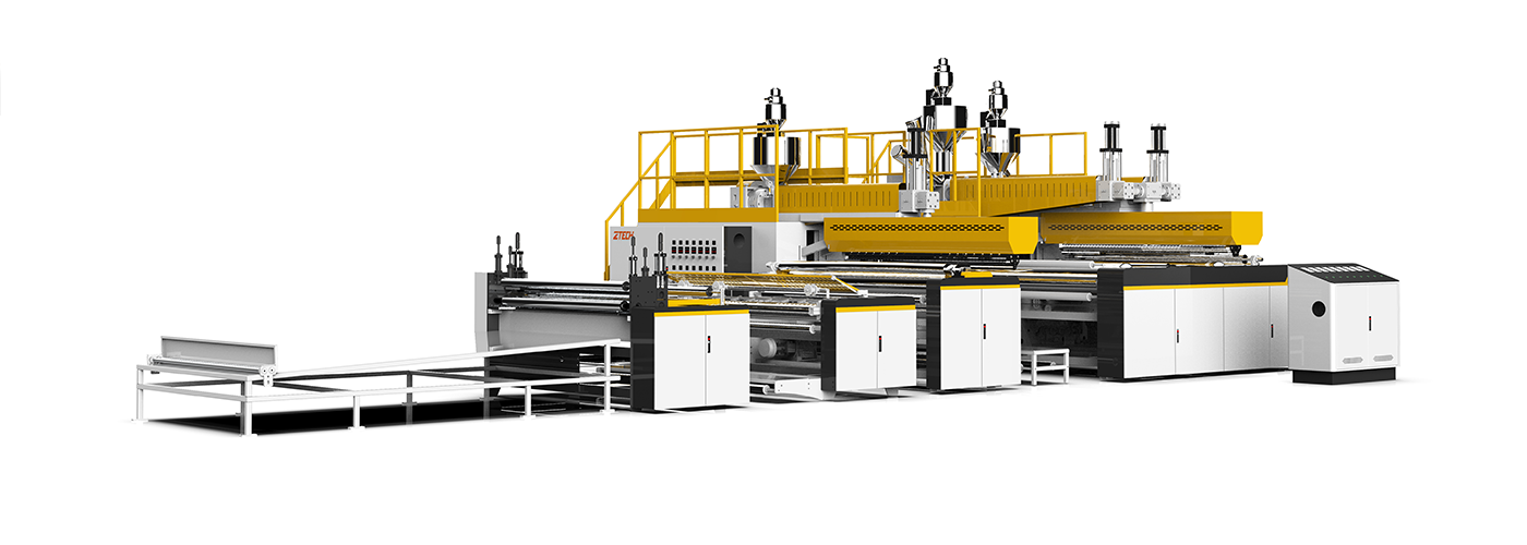 - Doble boquilla en T de alta y baja altura: Optimiza el flujo de material para PP grueso, garantizando un volumen de extrusión estable y un espesor uniforme de la estructura de 3 capas, solucionando así los problemas de irregularidad de la película gruesa.