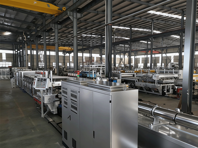 - Sistema de conformado de precisión: Adopta acero para moldes de alta calidad y sistemas de enfriamiento al vacío duales, solucionando la deformación en la producción de gran anchura y garantizando un espesor de pared uniforme y superficies lisas en las placas huecas de PP.