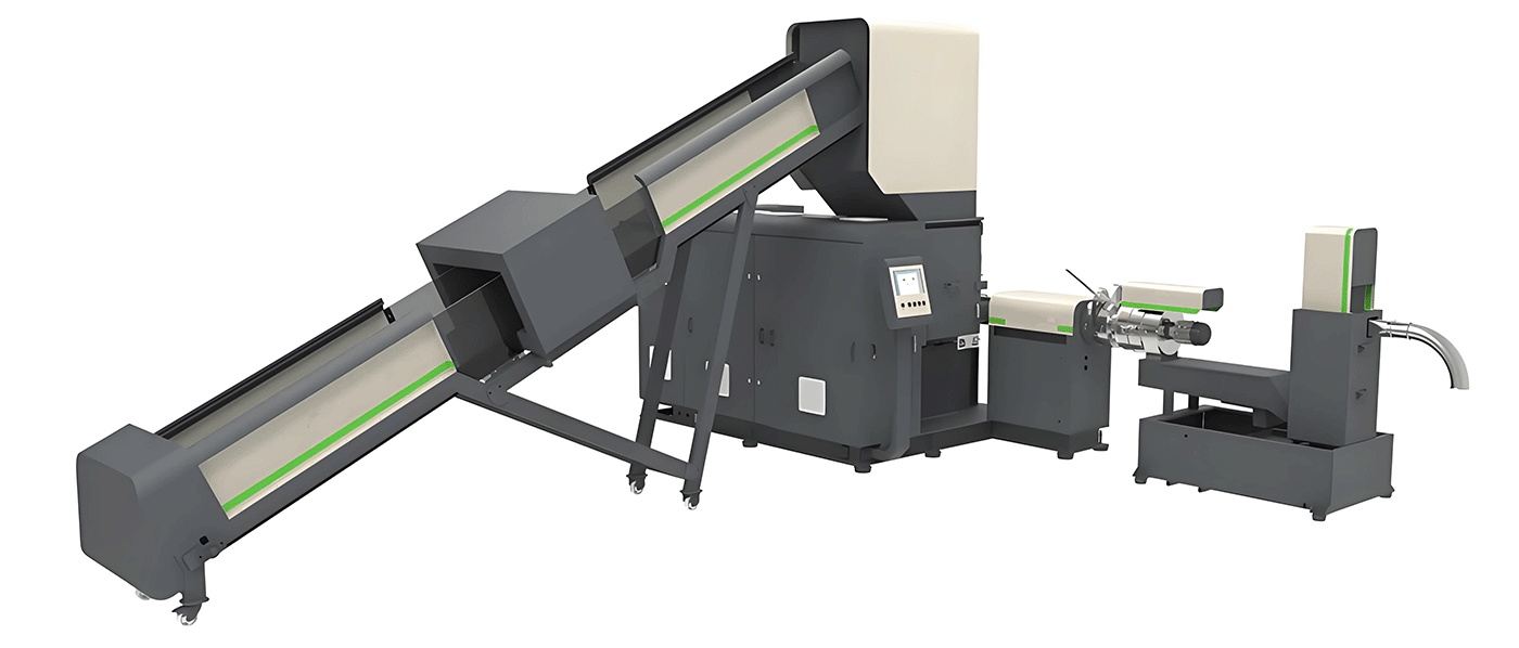 - Alta eficiencia de reciclaje: Integra trituración, extrusión, enfriamiento y granulación en una sola línea, con capacidad de producción continua, lo que reduce considerablemente la intervención manual y mejora la eficiencia del reciclaje de películas plásticas.